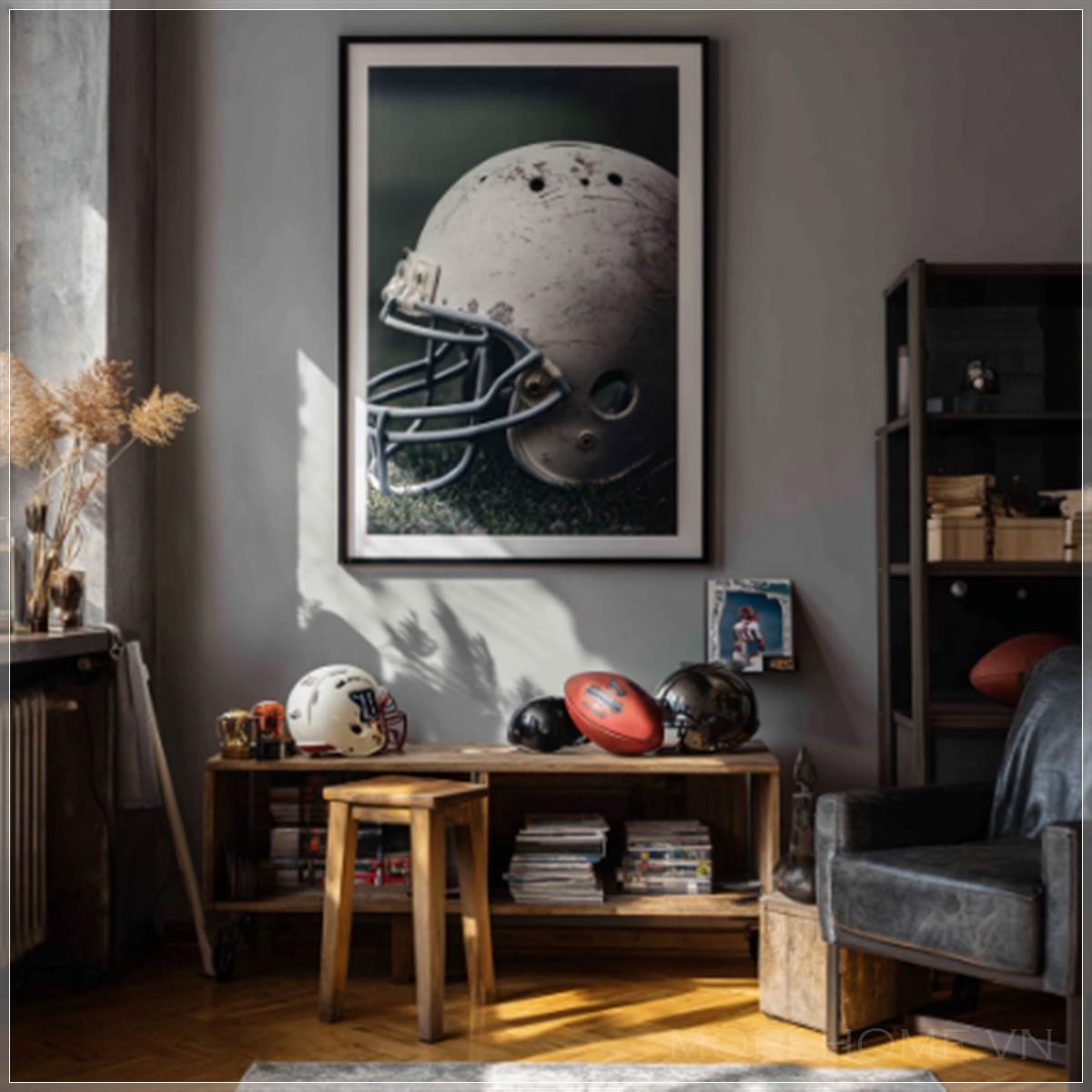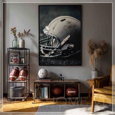 Một tấm poster trắng treo trên tường trong phòng với các yếu tố tượng trưng cho bóng đá Mỹ. Phòng phản ánh cuộc sống của một người đam mê bóng đá, với các vật phẩm kỷ niệm như mũ bảo hiểm, bóng đá, áo đấu đội, bóng được ký tên. Góc máy luôn trực diện với tấm poster, làm cho nó trở thành điểm nhấn của căn phòng. Tấm poster mang đến bản chất của bóng đá Mỹ sống động, ánh sáng và bóng đổ thực tế như trong nhiếp ảnh đoạt giải.