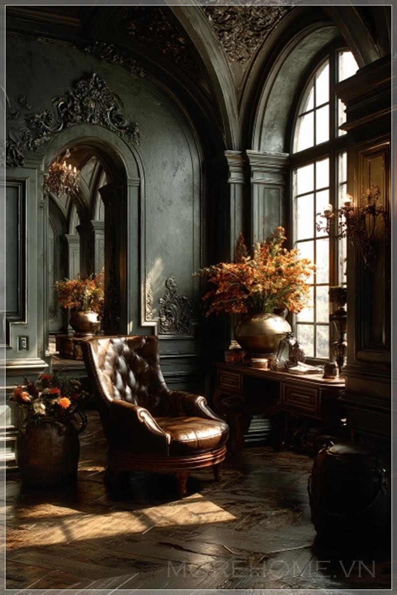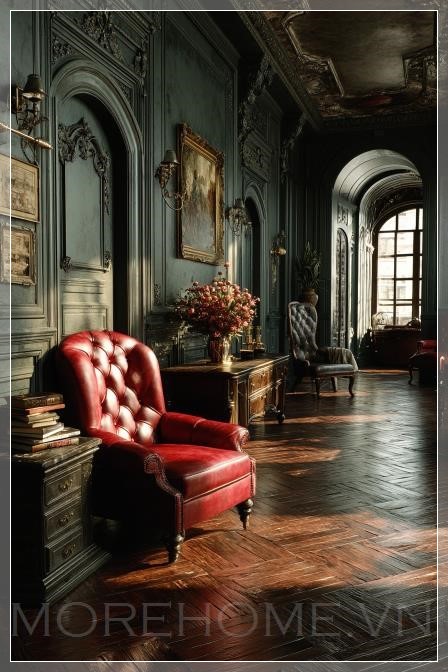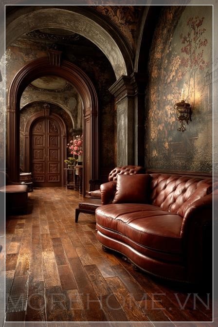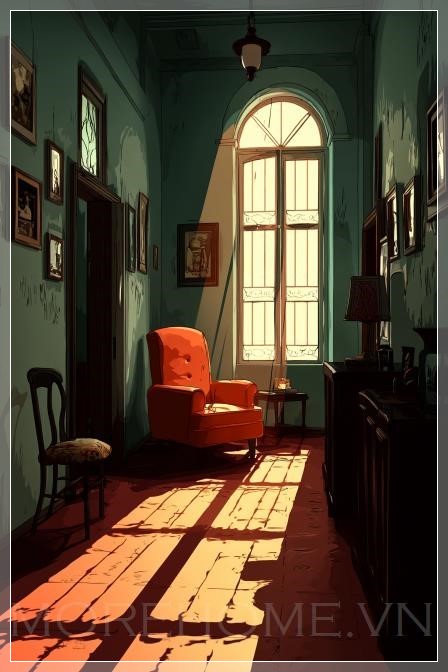Nội thất biệt thự với tường nền phẳng, mang đến cảm giác của một câu chuyện tình yêu bi kịch, Mafia, Lãng mạn, Tình yêu cấm đoán. Màu sắc chủ đạo là nâu ấm, tối tăm, tạo nên không gian đầy sự u sầu và huyền bí.