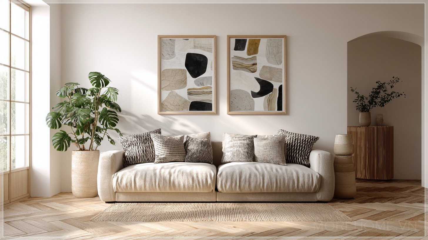 Để tạo ra một không gian như vậy, lựa chọn vật liệu là yếu tố then chốt. MoreWood cung cấp những sản phẩm gỗ tự nhiên được xử lý tinh tế – từ bàn trà, ghế ngồi đến hệ tủ trang trí – góp phần tạo nên một căn phòng không chỉ đẹp về hình thức mà còn bền vững theo thời gian. Khi kết hợp cùng thiết kế tổng thể từ MoreHome, toàn bộ không gian trở nên liền mạch, hài hòa, và dễ dàng thích nghi với nhu cầu sinh hoạt hàng ngày của từng gia đình cụ thể.