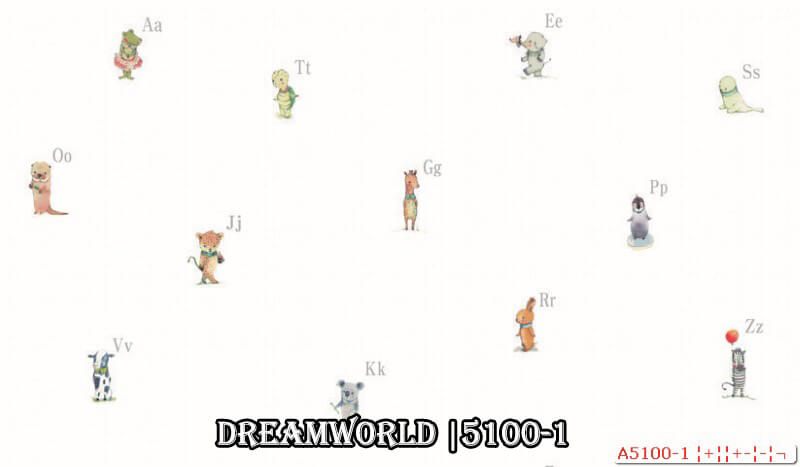 Mẫu giấy dán tường họa tiết loài vật và chữ cái tiếng anh màu trắng.