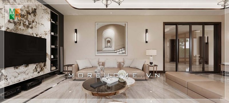 Thiết kế phòng khách với mặt bàn đá