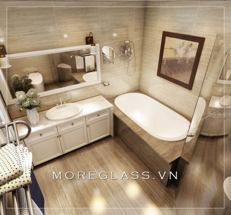Mẫu thiết kế phòng tắm master của nhà biệt thự được trang bị nội thất và các thiết bị vệ sinh hàng đầu theo phong cách tân cổ điển.